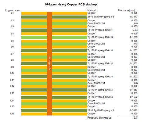 | Διάταξη Στρώσεων | PCB 16 στρώσεων, βαρύς χαλκός 3oz ανά στρώση |